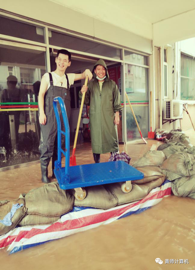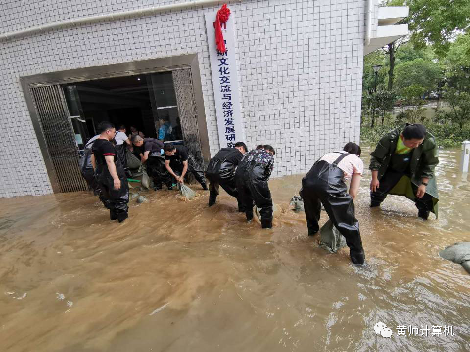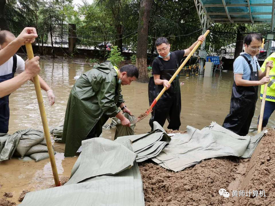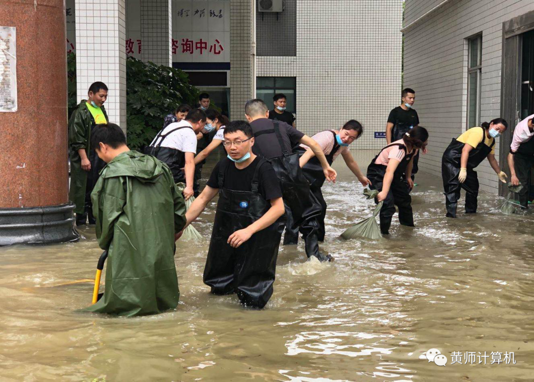 7月10日,计算机学院积极响应校党委号召,紧急抽调9名师生(含三名退伍学生)员工,迅速组成黄冈师范学院青年应急救援突击队一队,由学院院长胡志华担任队长,日夜奋战在抢险一线。