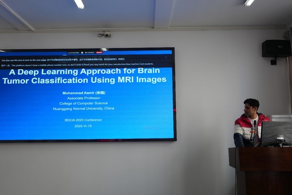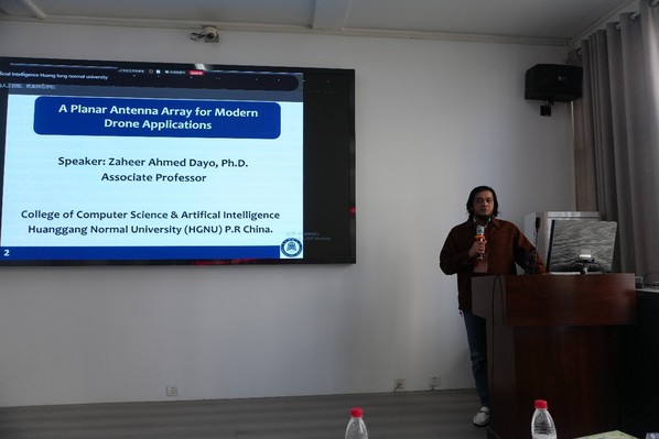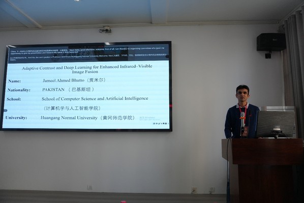 黄冈师范学院的米瑞副教授、石凡奇副教授、扎赫尔·君宇副教授、贾米尔副教授(均为线下)分别就基于深度学习的脑部疾病自动分类、靶向药物发现中的虚拟筛选、现代无人机用平面天线阵列、自适应对比度与深度学习在图像融合中的应用等主题作了报告。