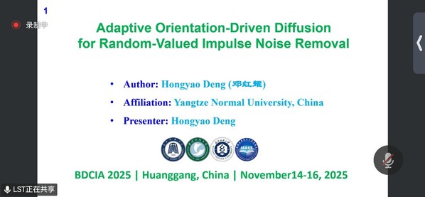 长江师范学院的邓红耀讲师(线下)汇报了关于自适应方向引导扩散技术用于去除图像噪声的研究。