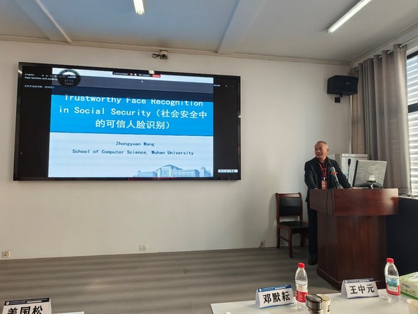 武汉大学王中元教授(线下)分享了社会安全中可信人脸识别技术的研究,并与现场师生进行了热烈互动;