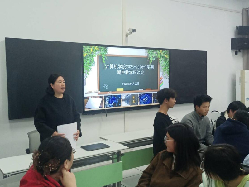 计算机与人工智能学院于2025年11月19日下午4点在逸夫楼325教室召开2025-2026学年第一学期期中教学座谈会,学院领导、各教研室主任及各班班委代表参会,围绕课程思政、教学内容与方法、教学形式与组织、课堂互动、作业与考试、课程实验等方面展开深入讨论。