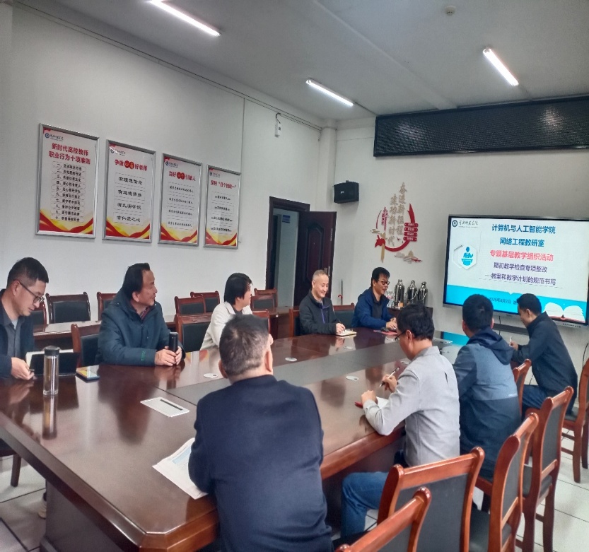 4 月 2 日,学院软件工程、计算机科学与技术、网络工程、人工智能、信息管理与信息系统五个教研室同步开展基层教学组织专题活动。各教研室紧扣期初教学检查反馈问题,以课程大纲、授课计划、教案、教学 PPT 等教学文件为重点,开展规范化研讨与整改落实,明确教学材料撰写标准、更新要求与质量规范。网络工程、人工智能教研室以核心课程为示范,开展教学材料标准化交流;软件工程教研室推行 “课程材料清单制”,推动教学资料完备化、规范化、可追溯。信管、计算机科学与技术教研室现场演示学校一站式服务大厅 AI 评教结果查询流程,指导教师运用 AI 评教数据精准诊断教学薄弱环节,以数字化手段赋能教学持续改进。各教研室同步对毕业论文质量管控、工程(师范)专业认证材料准备、新教师 “老带新” 一对一帮扶、师范生技能竞赛与教育见习等重点工作进行统筹安排,压实工作责任,细化推进举措。